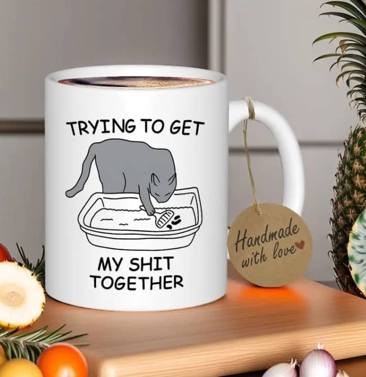 1pc Funny “Trying to Get My Shit Together” Coffee Mug – 11oz White Novelty Gift Cup with & Toilet Paper Design, Hand Wash Only, Durable for Home, Office, Bathroom – Humorous Quote for s,, &+Shipping