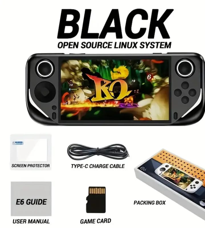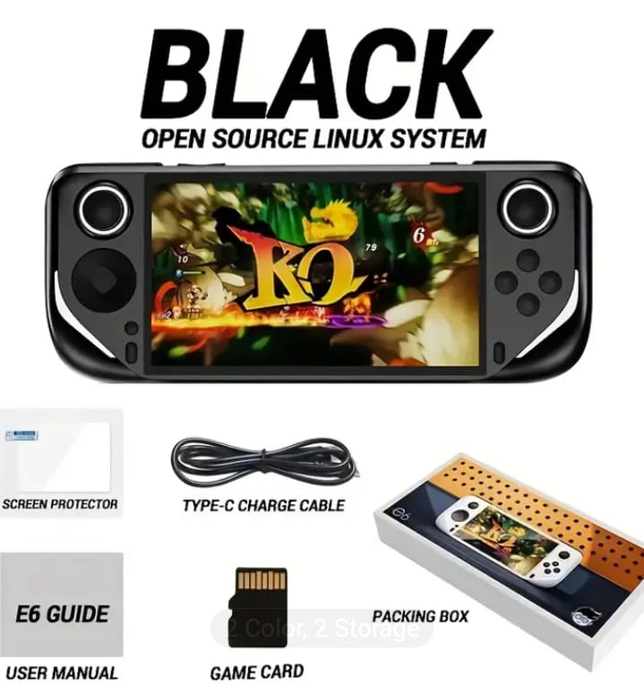 Large Screen E6 Handheld Game Console – Retro Gaming Device with Dual Joysticks, 5.1-inch 4K IPS Display, TF Card Slot & USB-C Charging, 3 Color Options, Rechargeable Battery, Perfect Holiday Gift for Gamers, Durable Gaming Accessory, Retro Game Console, Retro Gaming Console, Handheld Game Console, Game Boy+Shipping