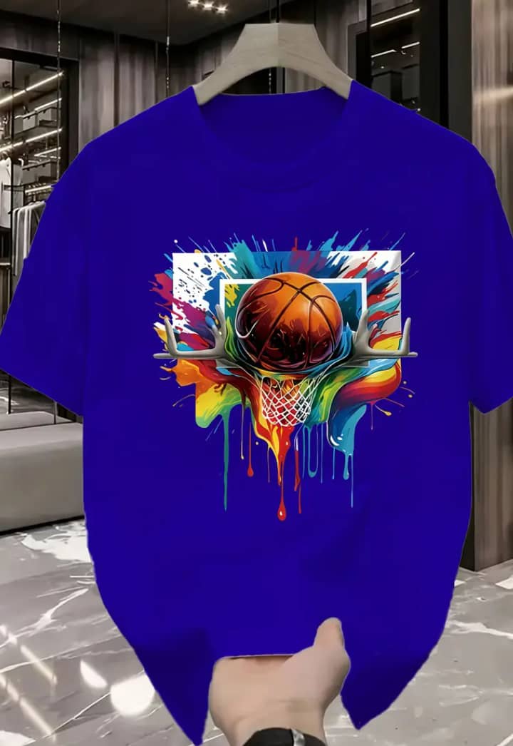 Men’S Basketball Graphic T-Shirt – Royal Blue Shirt with Hoop Design – Lightweight Summer Tee for Sports, Casual Outfits & Casual Attire – Breathable Round Neck Top for Basketball Fans & Casual Attire, Basketball Shirt, Sports Fan Apparel, Vibrant Print Shirt, Comfortable Fit Shirt, Active Lifestyle, Trendy Design, Durable Material, Print Top, Streetwear Lovers, Streetwear Fashion, Urban Style, Soft Material, Streetwear Enthusiasts+Shipping