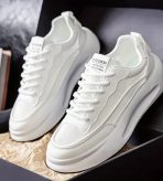 Men’S Breathable Mesh Sneakers – White Low-Top Casual Shoes with Thick Cushioned Sole, EVA Insole & Lace-Up Closure for Outdoor, Running, Hiking – All-Season Comfort, Hiking Footwear, Stylish Street Shoes, Cushioned Comfort+Shipping