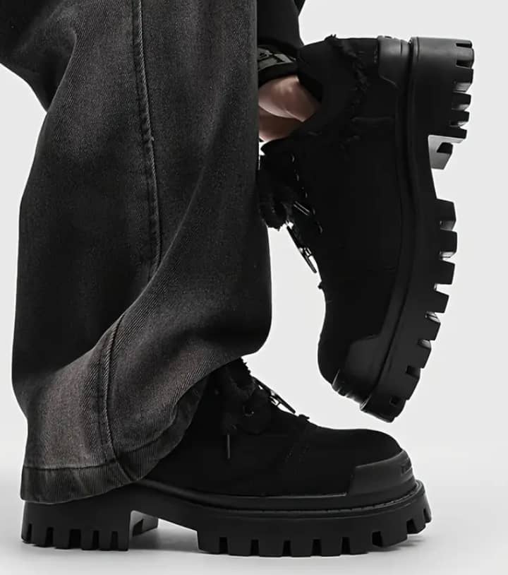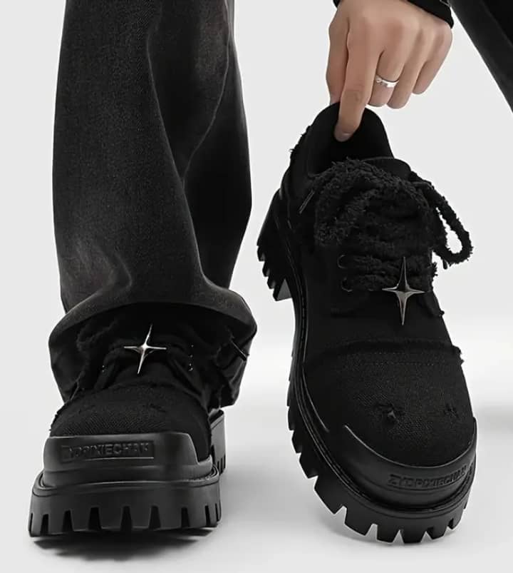 Men’s Casual Thick Sole Shoes – Stylish Low-Top Sneakers with Rubber Sole for Outdoor, Daily Wear & Parties – Black, Party Sneakers | Rugged Sole Design | Stylish Laceup Closure+Shipping delivery in 15-22 days