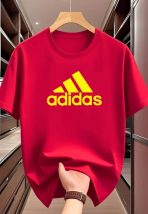 Men’S Quick-Dry Athletic T-Shirt – Lightweight Breathable Fabric, Vibrant Red with Yellow Adidas Logo, Casual Summer Tee for Gym, Casual Attire & Casual Outings, Gym Shirts, Workout Clothing, Sporty Design, Durable Construction, Performance Wear, Active Lifestyle, T-shirt Men, Men T-shirt, T-shirt For Men, Men’S T-shirt+Shipping