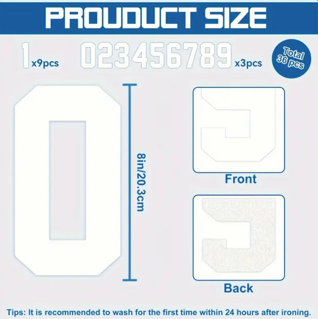 36-Pack White Heat Transfer Iron-On Vinyl Stickers, Numbers 0-9 DIY Fashion Craft, for Clothing, T-Shirts, Sports Apparel Decoration, Sewing, Knitting Supplies, Iron-On Appliques