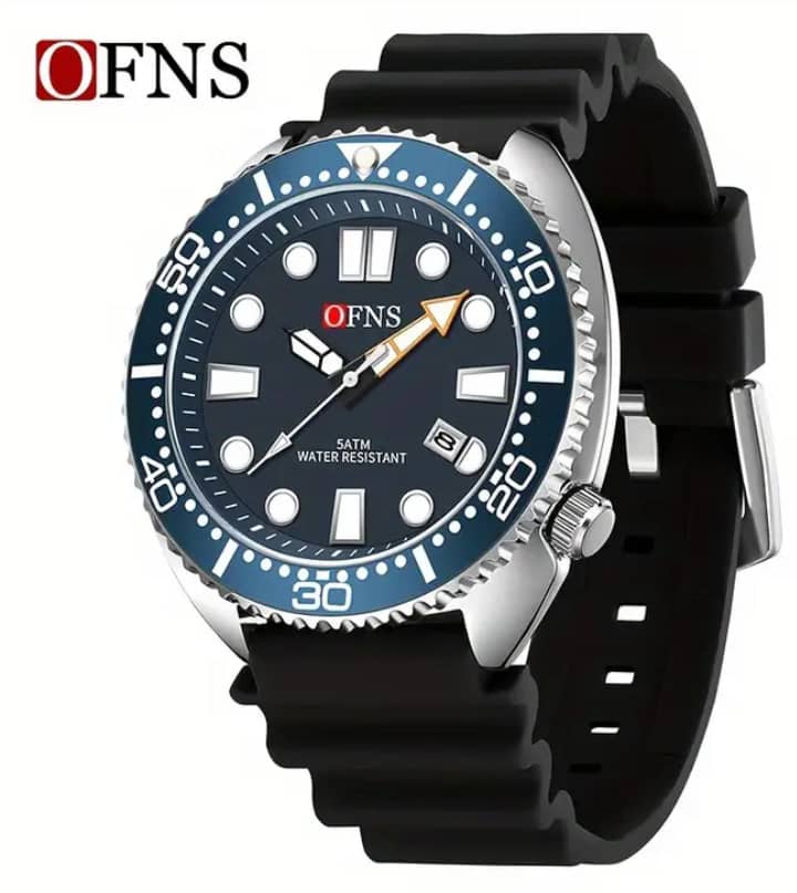 OFNS Men’S Luxury Business Watch with Calendar, 50m Waterproof, Night Light, Date Display, and Black Rubber Strap – Ideal for Sports and Formal Events, Formal Timepiece|Sleek Black Watch|Durable Zinc Alloy Case+Shipping