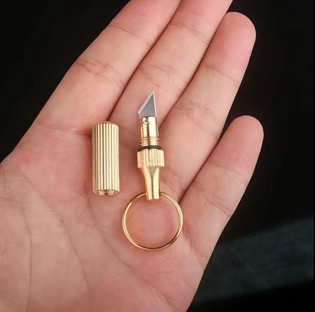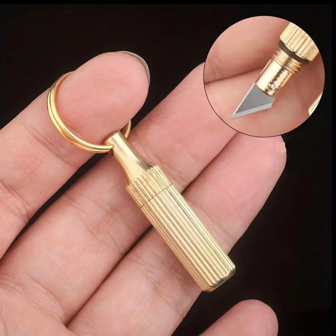 Brass Compact Pocket Knife Keychain – Lightweight, Portable Drop Point Blade with Textured Grip for Camping, Hiking & Outdoor Adventures, Camping Accessories
