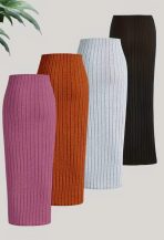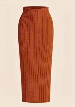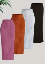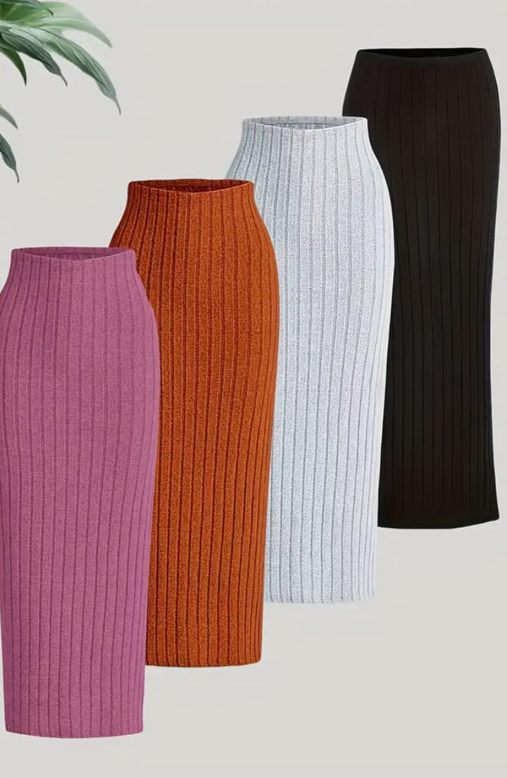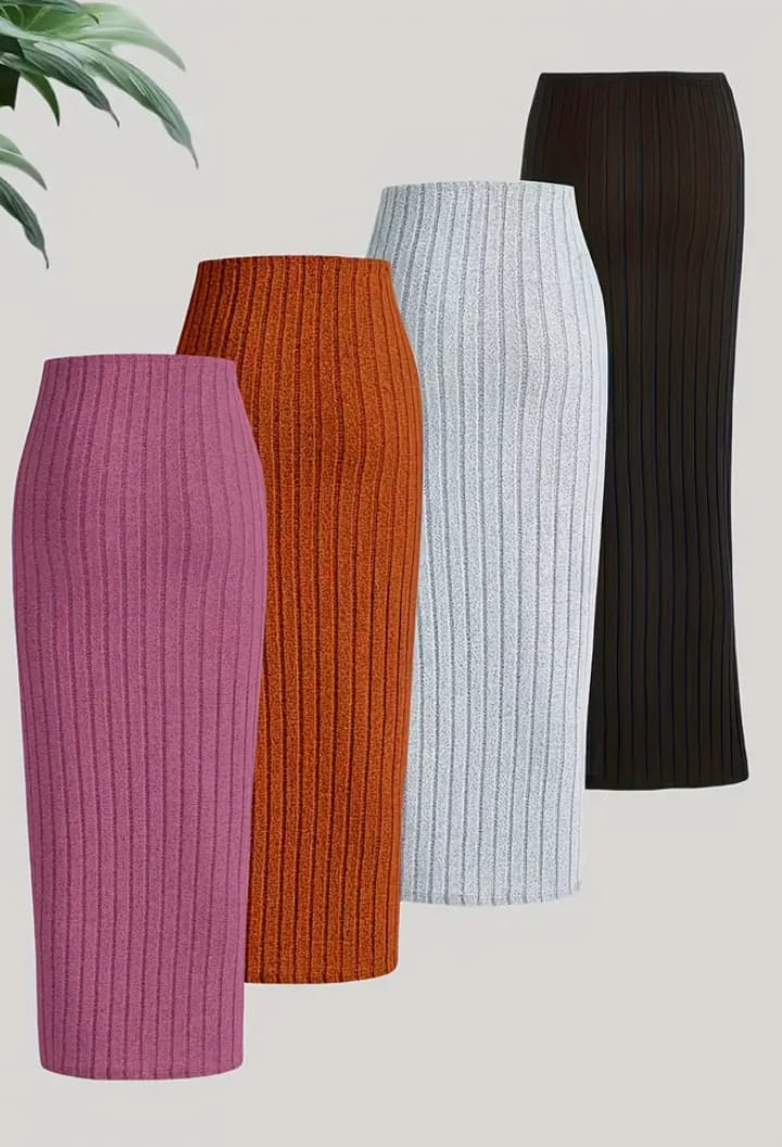 Women’S Stylish Solid Color Skirt Set of Four – Ribbed, High-Waisted, Mid-Length Skirts in Orange, Green, White, and Black – Perfect for Fall/Winter Casual Wear, Skirt Set+Shipping